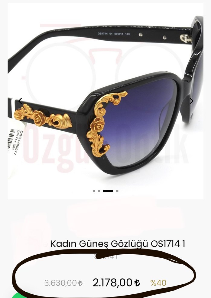 Hiç kullaınılmadı pahalı alınmıştı şimdiki güncel fiyatı 2178 tl şuan indirimde Altın renkli, zincir detaylı ve parlak yüzeye sahip kadın güneş gözlüğü. Degrade renkli camları, klasik zarafeti modern tarzla buluşturur.
