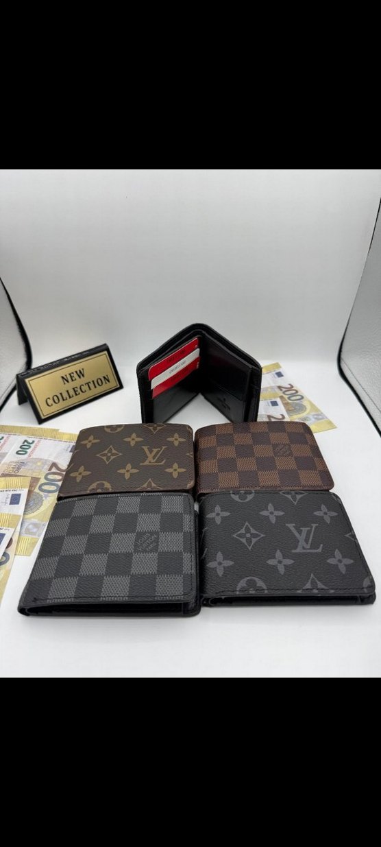 Kahverengi tonlarda, baskılı desenlere sahip modern klasik erkek cüzdanı. Kart ve nakit bölmeleri bulunur.
