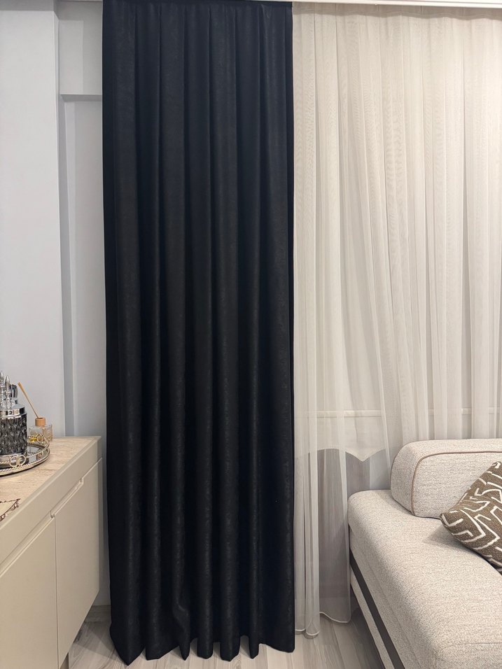 Modern klasik tarzda, desen içermeyen koyu siyah renkte, şık ve zarif bir perde. Ürün 7 pile 70 cm boyu 2.50 cmdir. 4 parça fiyatıdır,isteyene tek parça olarakta satılır.
