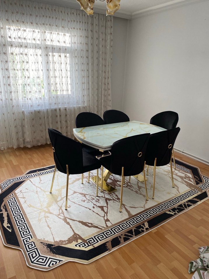 Modern klasik tarzda, siyah yılan desenli ve koyu renk tonlarında masa takımıdır.