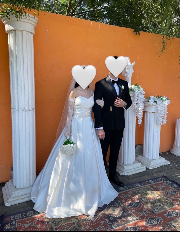 S-M bedene uygun. boyum 168- 10,5 cm topuklu ile kullandım. Defosu yok sadece nikahımda kullandım. Ziberlin kumaş straplez gelinliktir. 2m İncili Duvak, Tarlatan, 6m gelinlik ipi (sıçan kuyruğu) göndereceğim. Kuru temizlemesi yapılmıştır.