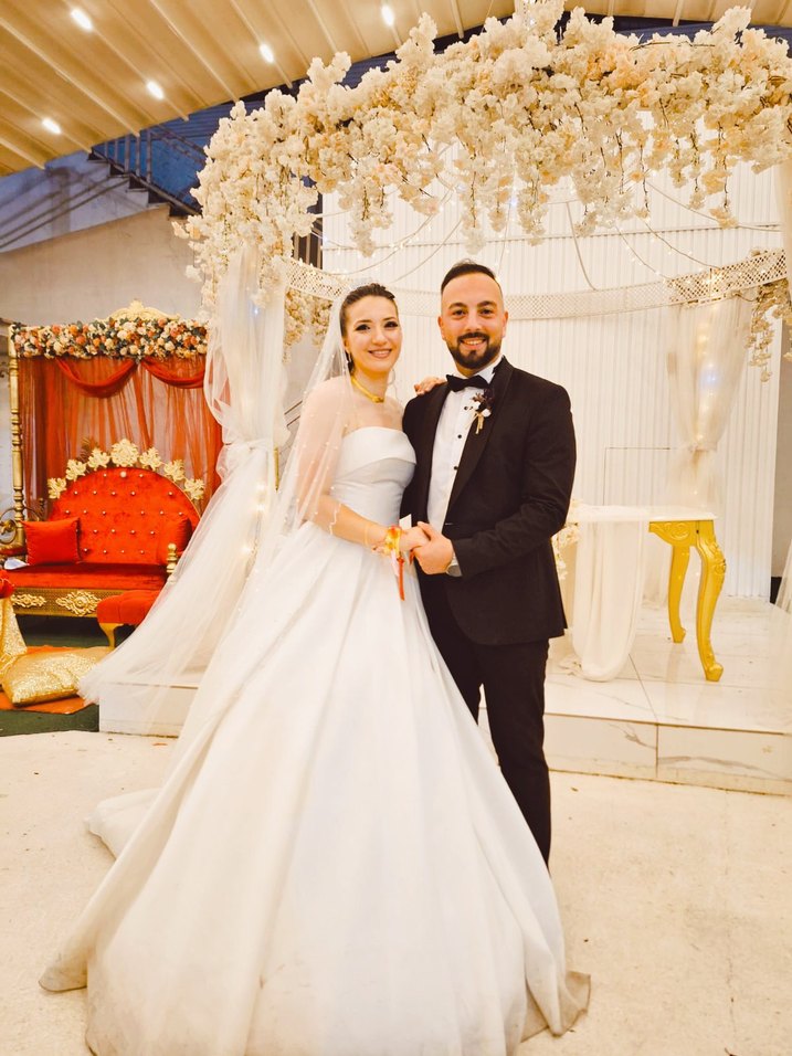 Beyaz straplez, uzun A kesim ve regular fit gelinlik, modern ve klasik tarzı bir araya getiriyor. Düğünümde yağmur yağdı ama kuru temizlemeye verdim. Kuyruğu temiz. Son iki fotoğraf kuyruklarıdır.