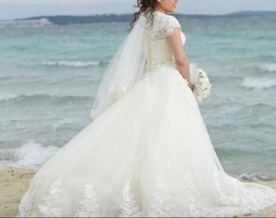 Uzun, straplez yaka ve ince askılı, klasik şıklığı modern dokunuşla buluşturan, vücuda oturan A kesim beyaz gelinlik. Hafif kumaş ve zarif dantel detaylar öne çıkar. Arkadaşımın gelinliği Sümerler'den alındı ciddi alıcılar detay sorabilir makul pazarlık payı vardır