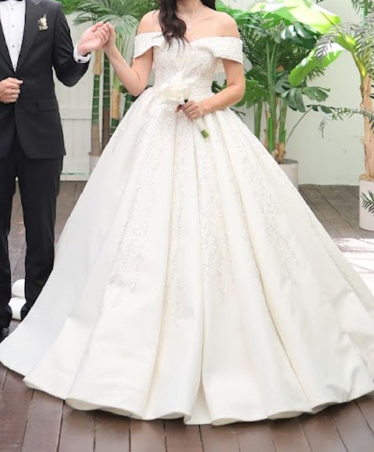 Beyaz prenses gelinlik, straplez yaka ve omuzları açık kollara sahip, uzun ve dökümlü etek ile modern klasik şıklığı yansıtıyor. 3 ay önce giydim özel dikim 170 boy 65 kilo kuru temizleme yapıldı yerim olmadığı için satiyorum