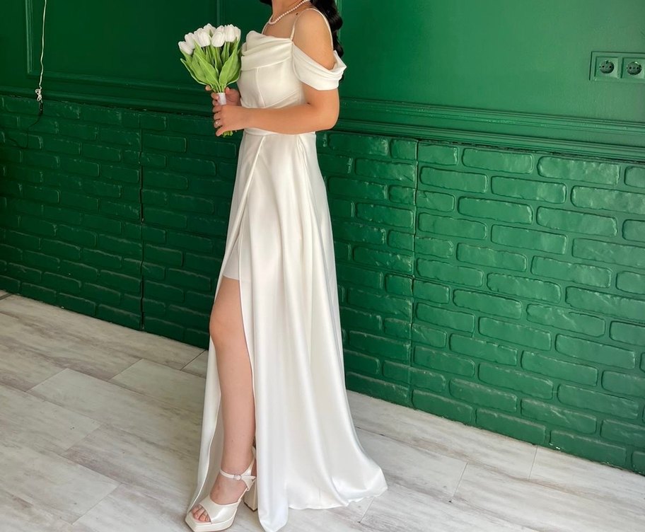 Askılı kolları bulunur. A kesim, normal kalıp ve yırtmaç detayı bulunur. Çok rahattır ben nikahımda kullanmıştım. Daha sonra kullanacak bir yer bulamadım. Nikah, nişan için uygundur ilgilenenler iletişime geçebilir