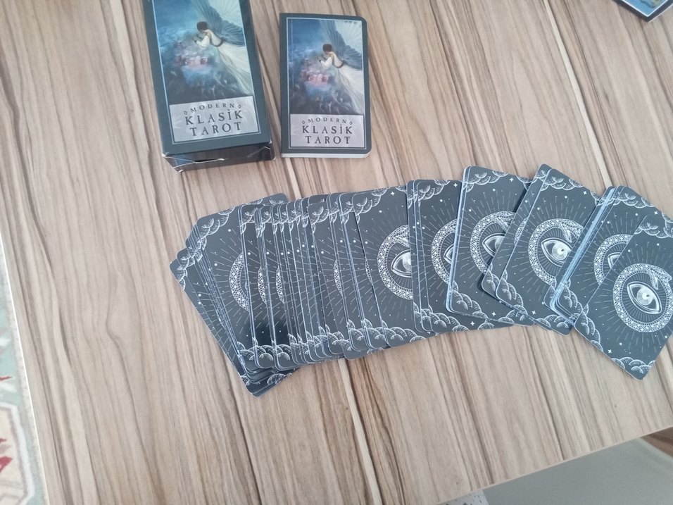 Modern Klasik Tarot destesi açıklamalı kitabı ve kutusuyla beraber.Hasarsız ve kullanılmadı.