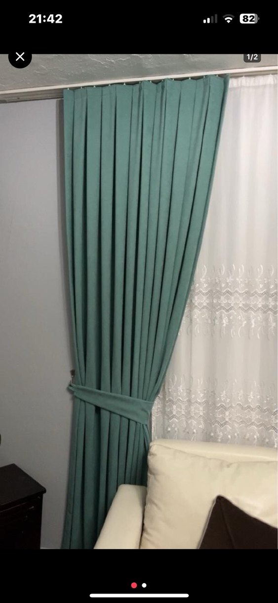 Modern Klasik Turkuaz fon Perde 3 adet