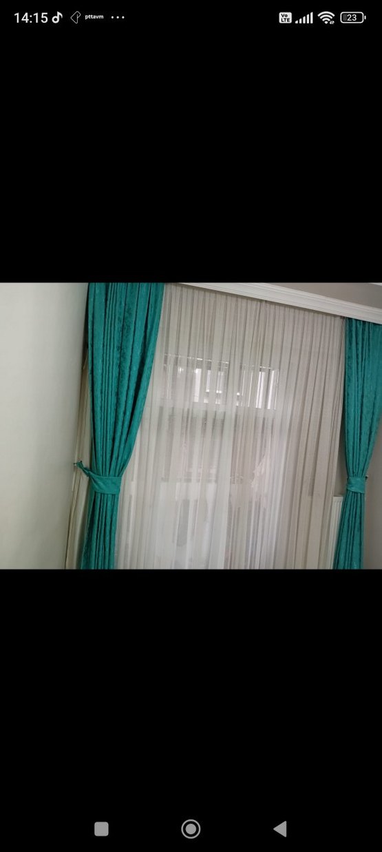 Modern klasik tarzda, açık turkuaz renkte, desensiz fon perde. Her mekâna ferah ve şık bir dokunuş katar boy uzunluğu 2.75 eni 1 metre sık pile hiçbir kusur yoktur mobilya değişikliği nedeniyle satılıktır