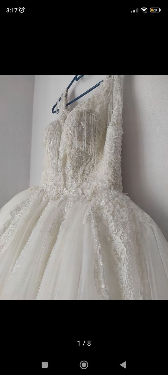 Bu prenses gelinlik, vücuda oturan kesimi ve uzun etek boyu ile modern klasik tarzı vintage dantel detaylarla birleştirir. . boncuk işlemeli kuyruklu tarlatansızdır kabarıklığa gore alınabilir arkası britli ve düğmeli olup 36 38 bedene olur kuru temizleme istenilirse yapılabilir