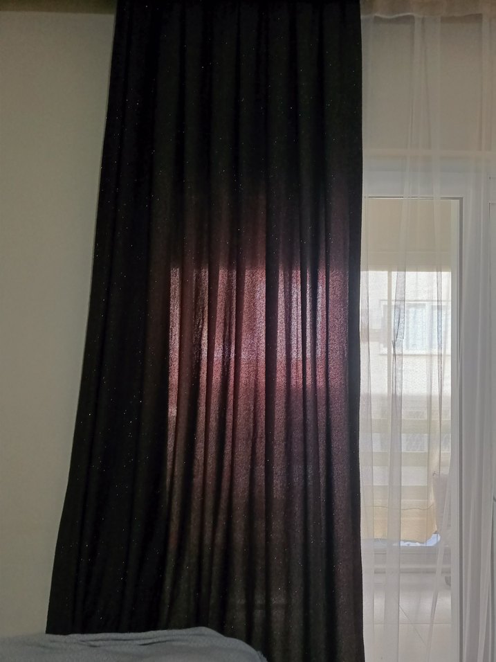Modern tarzda siyah, desensiz fon perde. Hafifçe ışık geçirir ve mahremiyet sağlar, odanıza şık bir dokunuş katar. ışıltısı var simli gibi tek kanat en pileli hali 90 cm boy 2.10