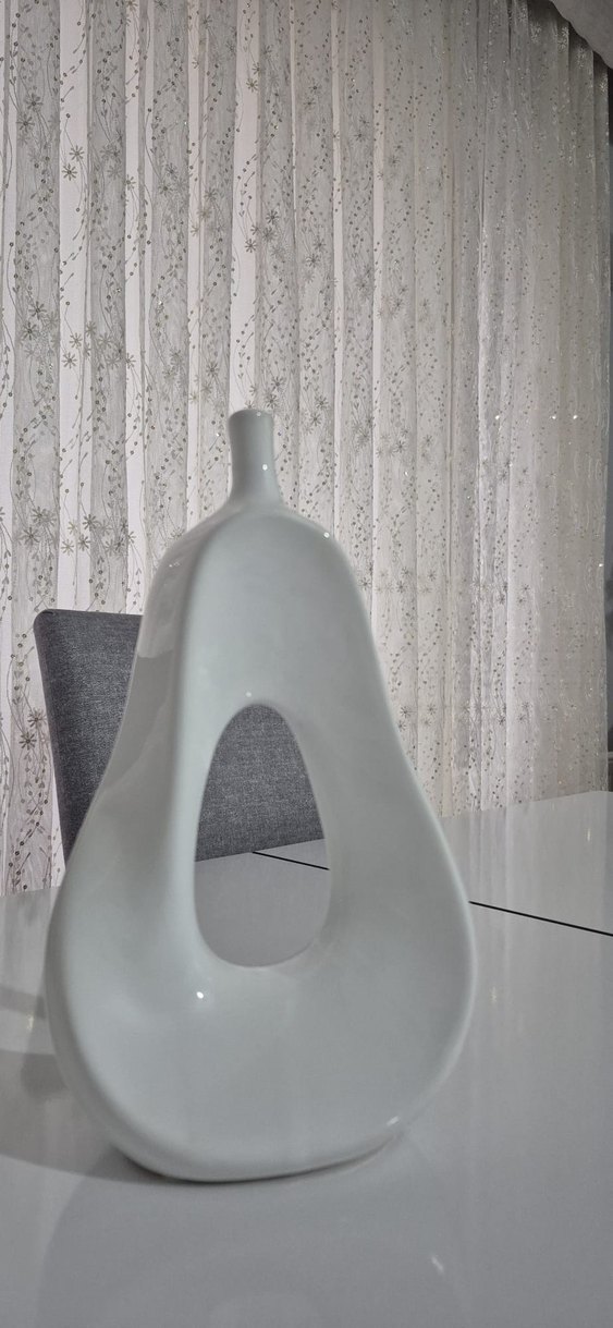 Açık merkezli ve pürüzsüz yüzeyli modern tasarımlı gri vazo, dekoratif kullanım için uygundur.