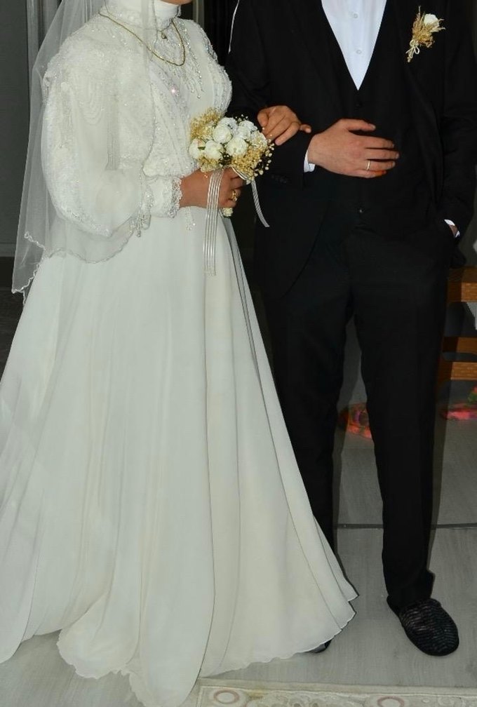42-46 ayarlanabilir beden aralığında şık gelinlik ürünün etek kısmında bir sökük mevcuttur fakat etek kısmında olduğu için görünmüyor bile. Her açıdan fotoğrafını eklemeye çalıştım, arka kısmı daha profesyonel bağlanabilir ❤️ pazarlık payı mevcuttur.