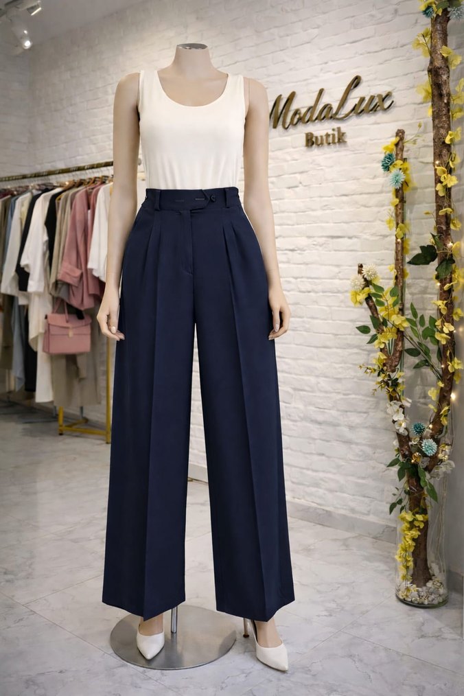 Modolux markasının lacivert kumaş pilili pantolonu, normal boy ve regular fit, ofis için uygun şık bir seçenek. (36_46)bedenler mevcut