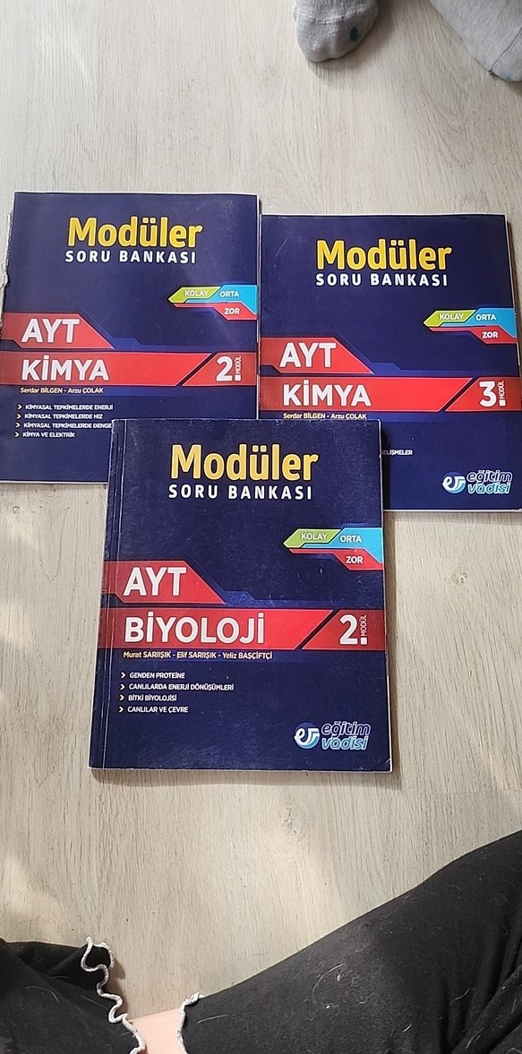 Modüler AYT Kimya ve Biyoloji soru bankası seti, kolay, orta ve zor seviyelerde sorular içerir. üçü de satılıktır ara ara çözülmüştür gerisi temizdir