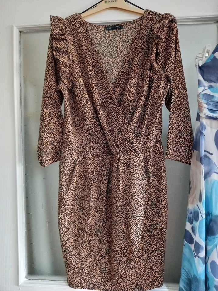 #mohito#kısaelbise#ofiselbisesi Ürünü Dolap'tan kızıma aldım ama büyük geldi tekrar satışa koydum. Çok kaliteli güzel bir elbise. Kruvaze yaka isteyen içten çıtçıt, beli lastikli ve alt kısım anvelop model ama açılmaz çünkü yandan dikişli.. Kolları dirseklerde..Mevsimlik bir elbise..Astarı yok ama iç göstermiyor.. Boyu : 95 cm..İki koltuk altı arası: 50 cm ama 55 cm ye esniyor..Beli : 40 cm ama 50 cm ye esniyor.. Kalıbı bir tık büyük 38 /40 beden uyumludur..