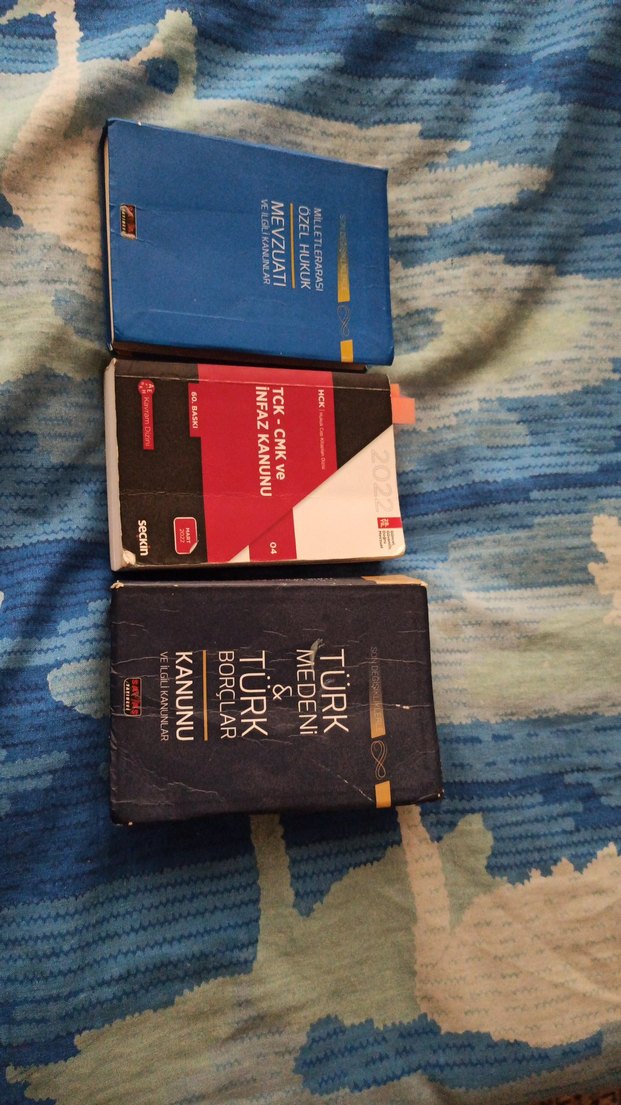 MÖHUK & TCK-CMK ve İnfaz Kanunu & TMK & TBK Kanunlar kullanılmıştır, her birinin içinden oldukça örnek görsel yükledim, kullandığım için yeterince uygun fiyata veriyorum, toplu fiyat 90 TL, ayrı ayrı da satabilirim