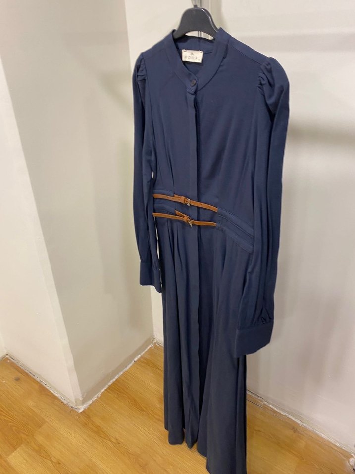 Moila Kemer Detaylı Lacivert Uzun Kadın Elbise