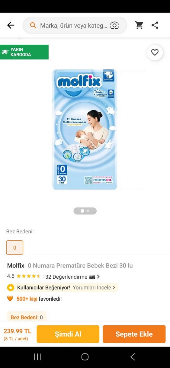Molfix 0 numara prematüre bebek bezi 30'lu pakette açılmamıştır kapalı paket ikizlerim prematüre doğdu toptan almıştım son paketi kullanamadan büyüdüler sıfır ürün