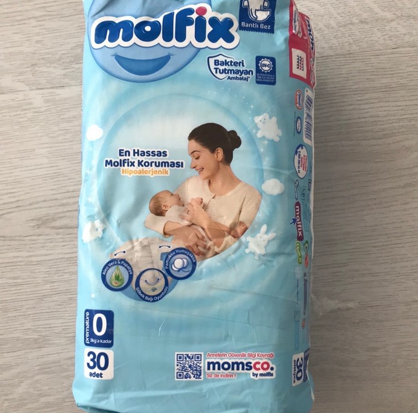 Molfix 0 numara yenidoğan bebek bezi, bakterilere karşı koruma sağlayan hipoalerjenik yapıya sahiptir. 3 kg'a kadar bebekler için 30 adetlik pakette sunulur.3 pakettir.