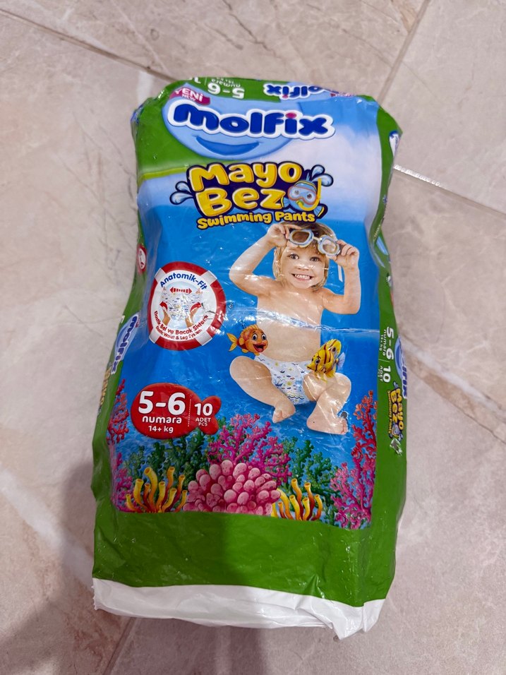 14-16 kg çocuklar için Molfix mayo bez, 5-6 numara. 10'lu pakette, su kullanımı için uygundur. ♂️