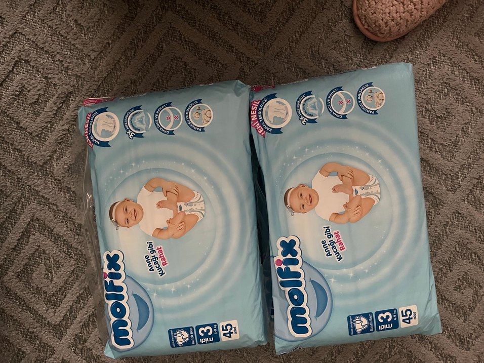 Molfix Mini bebek bezleri, 3 kg ve üzeri bebekler için 45'li pakette sunulur. Yumuşak ve emici yapıya sahiptir. 2 paket koyuyorum satışa