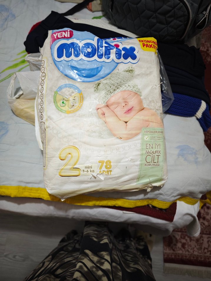 Molfix mini bebek bezleri 3-6 kg arası bebekler için, cilde nazik ve hipoalerjenik koruma sağlar.uymadigi için kullanmadım