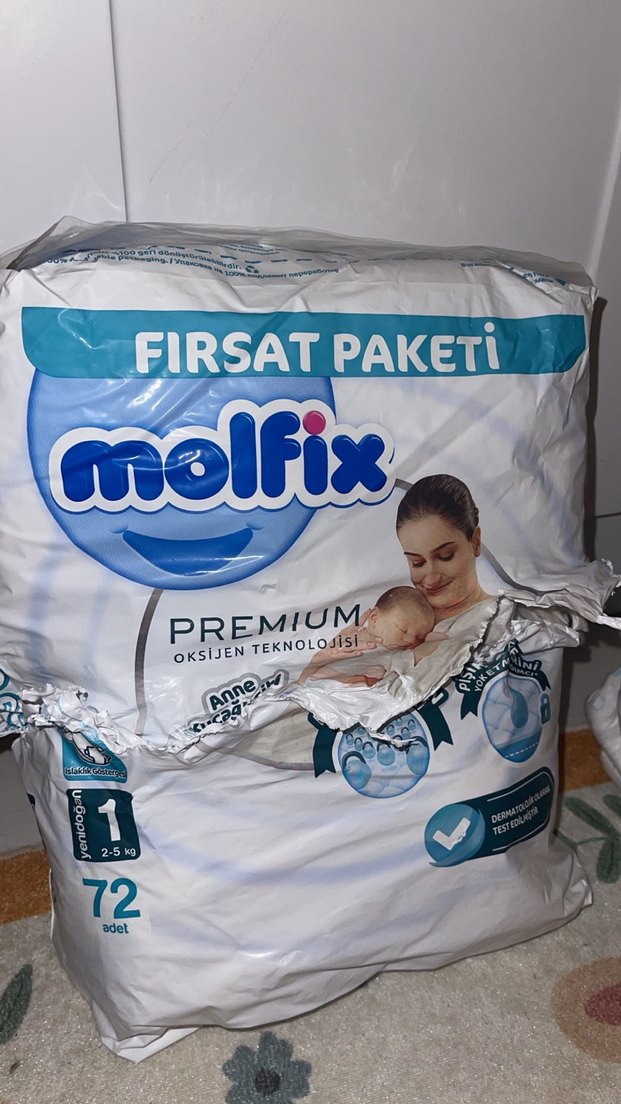 Molfix Premium 1 numara 2-5 kg bebekler için oksijen teknolojili, yumuşak ve nefes alabilir bebek bezi. Pakette 47 adet bulunur.