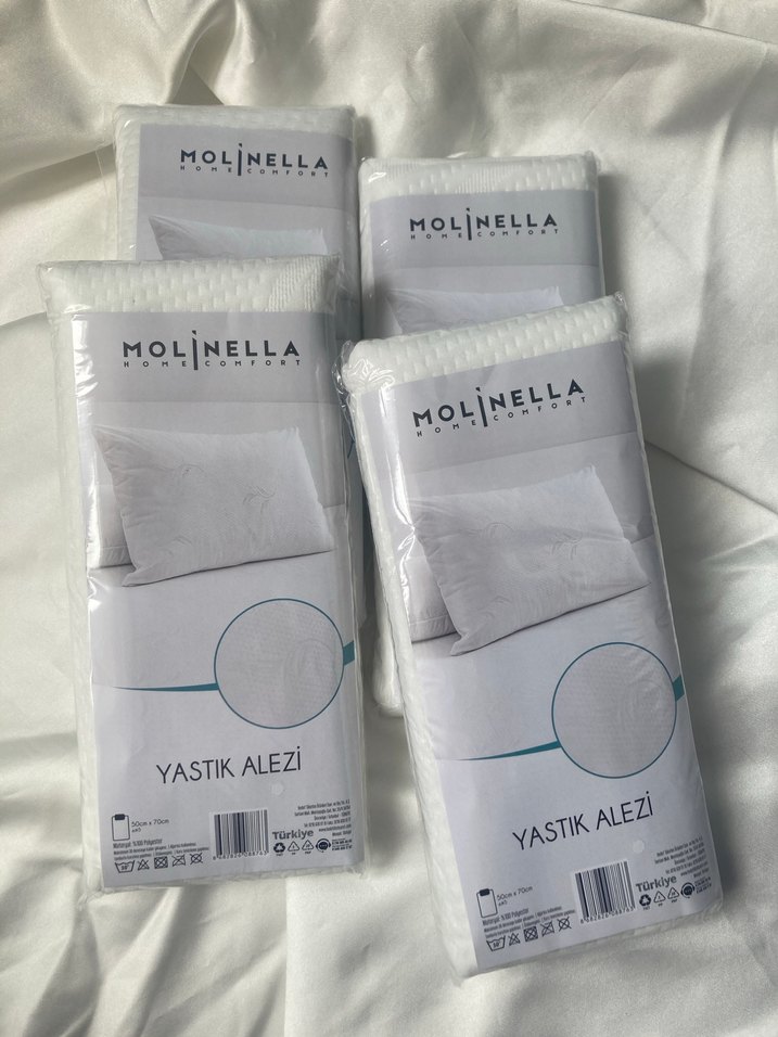 Molinella yastık alezi, beyaz zemin üzerine gri desenli olup yastıkların temiz kalmasını sağlar. Yumuşak ve koruyucu bir katman sunar. ️