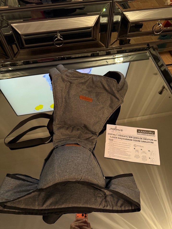Gri renkte, ayarlanabilir kayışlara ve yumuşak kumaşa sahip bebek kangurusu. Ek destek için bel kemeri bulunur. Merhaba, hiç kullanılmadı tertemiz poşetinde duruyor, sadece bir kere denedim 5 dk ama bebeğim sevmedi. 6-18 ay arası için uygundur, 800TL ufak pazarlık payı vardır