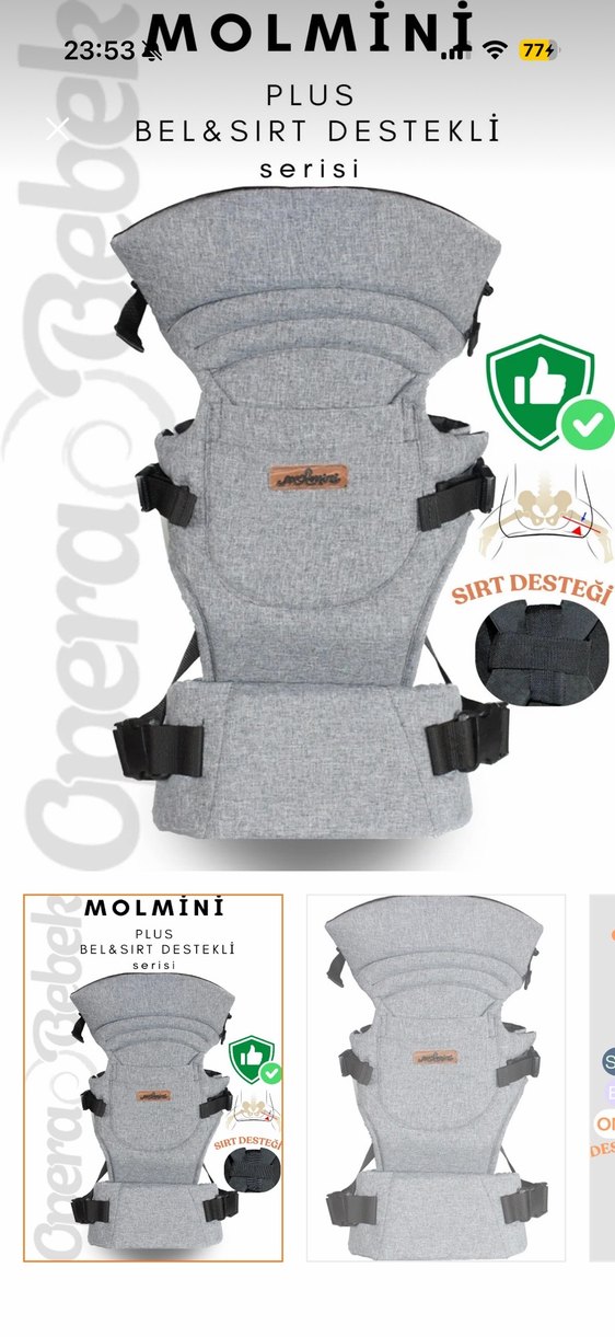 Hiç kullanılmadı. Sırt ve bel destekli kanguru.