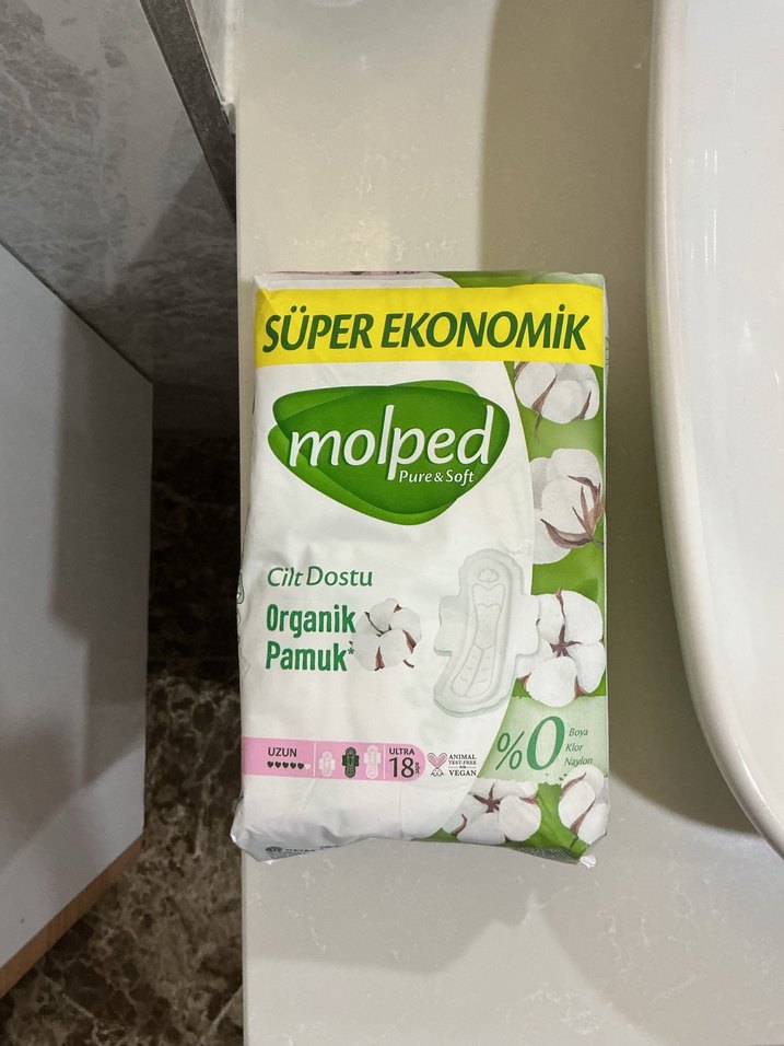 Molped organik pamuklu pedler, cilt dostu ve uzun süreli koruma sağlar. Pakette 18 adet bulunur ve süper ekonomiktir. Hiç kullanılmadı.