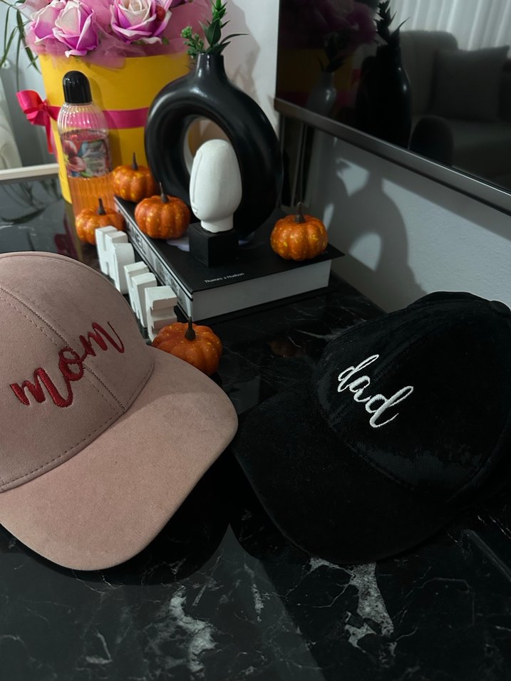 Mom- dad yazılı şapka bizde Burdan aldık resim için kullandık ihtiyacı olan alabilir anılarınıza an katacak şapkalar.