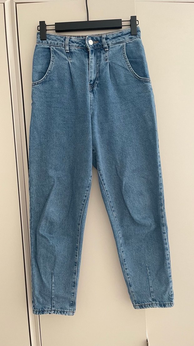 Kenar kısmında leke var Salaş kesim, midi boy mavi kot pantolon, gündelik kullanıma uygun, sade ve rahat bir şıklık sunar.