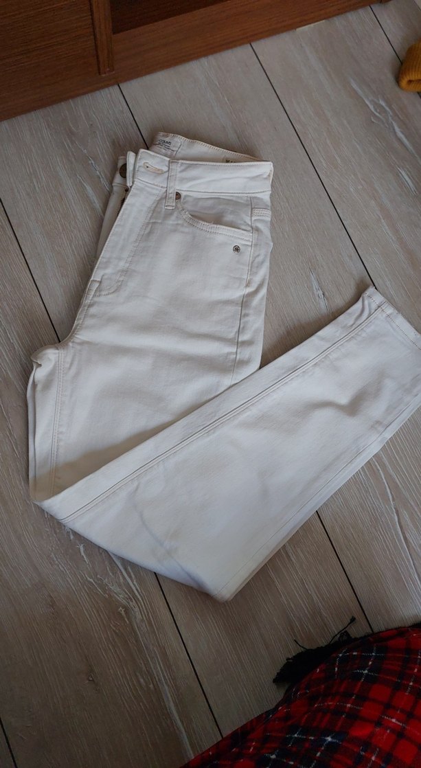 Bej renkte, pamuk kumaştan yapılmış, normal kesim ve normal boyda kadın pantolonu. Rahat ve şık bir görünüm sunar.