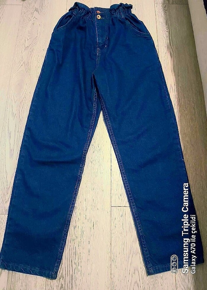 2 defa kullanıldı. Defosu yok beli lastikli mom jeans pantolon beden 40 rengi lacivert