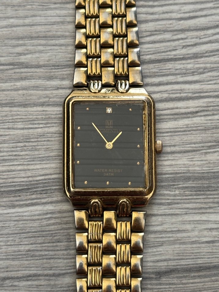 Momentus Vintage Unisex Kol Saati – 22K Gold Electro Plated – Japan • Momentus marka, zarif ve klasik tasarıma sahip vintage kol saati • Altın renk kasa ve metal bilezik yapısı ile şık ve zamansız bir görünüme sahiptir. Ürün Özellikleri: Marka: Momentus • Mekanizma: Quartz (pilli) • Üretim: Japan • Kasa: 22K Gold Electro Plated (altın kaplama) • Su geçirmezlik: 3 ATM • Kadran: Siyah zemin, altın renk indeksler ve akrep-yelkovan • Bilezik: Orijinal metal bilezik • Model Kodu: C732 Durum: Vintage bir üründür, yaşına bağlı olarak kasa ve bilezikte hafif kullanım izleri mevcuttur (fotoğraflarda detaylı şekilde görülmektedir) • Camında belirgin çatlak veya kırık yoktur. • Pil takıldığında çalışacaktır, gene de ufak bir bakım gerekebilir • Kozmetik durumu genel olarak iyidir. Önemli Notlar: Ürün altın değildir, altın kaplamadır (22K Gold Electro Plated). • Sıfır ürün beklentisi olanlar için uygun değildir. #momentus #vintagesaat #goldwatch #nostaljik #quartz #koleksiyonsaat #altınkaplama