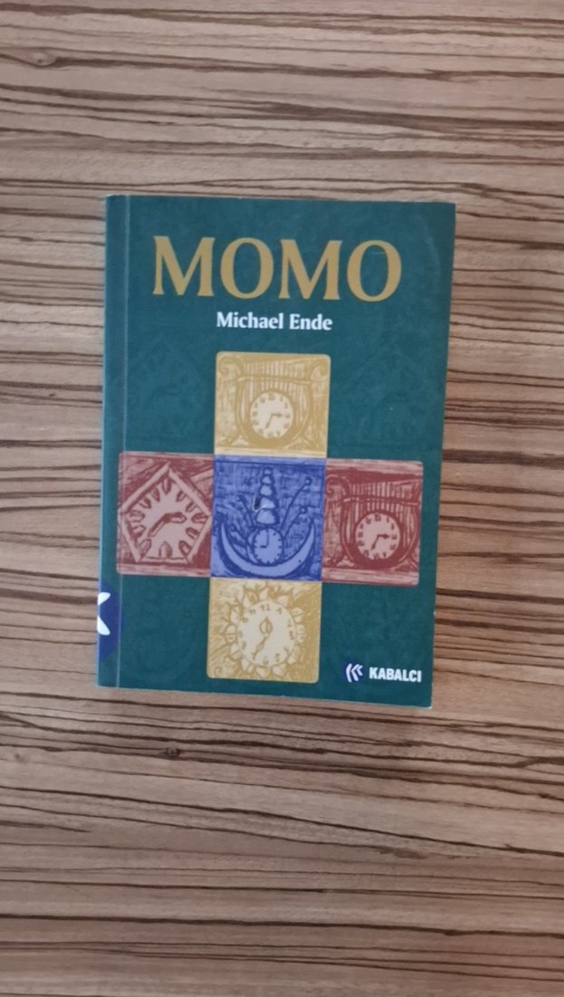 Michael Ende'nin Momo kitabı, Kabalcı yayınevi tarafından basılmış, saat temalı kapak tasarımıyla dikkat çekiyor.