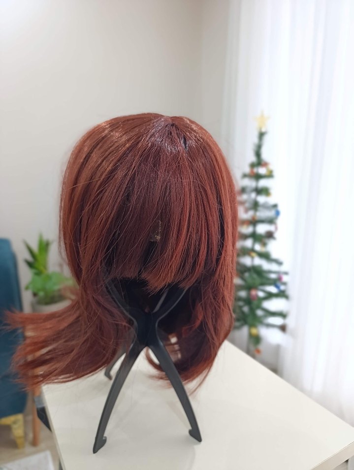 Ürün SIFIR dır Koyu kahverengi sentetik kumaştan yapılmış, minimalist ve avant-garde tarzda, zahmetsiz şıklık sunan kadın saç aksesuarı peruk.
