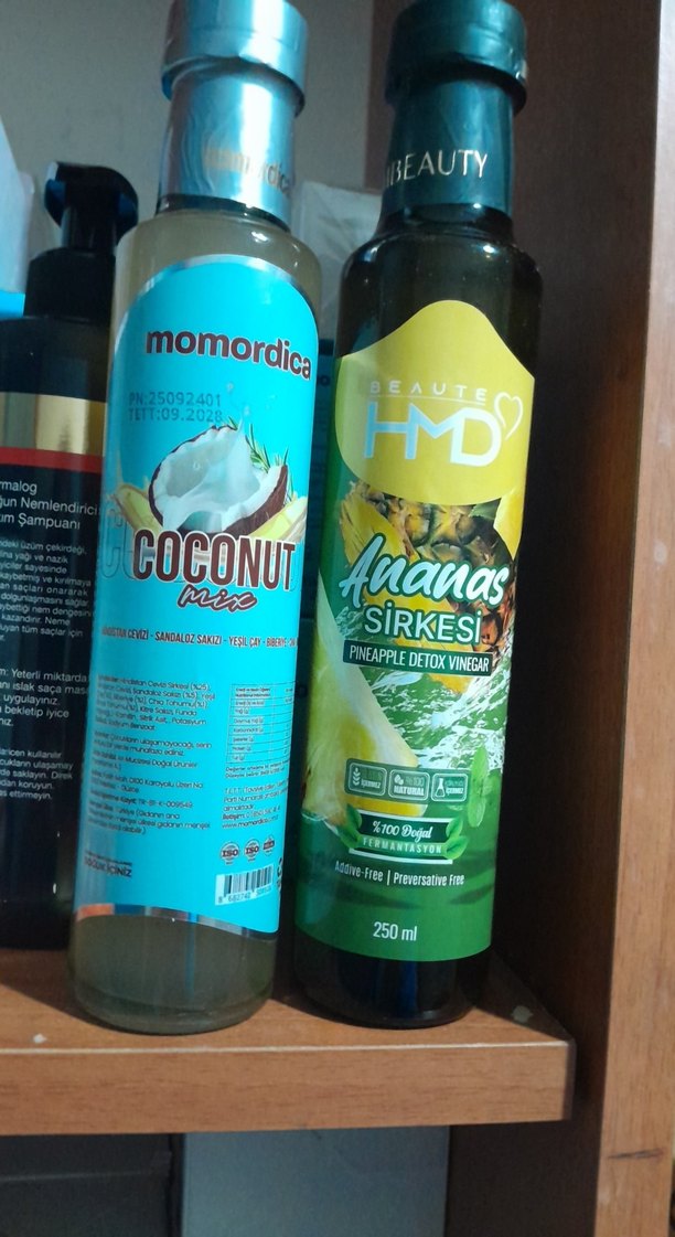 Momordica hindistancevizi karışımı şampuan ve Beaute ananas detoks sirkesi, 250 ml hacminde doğal bakım sağlar.