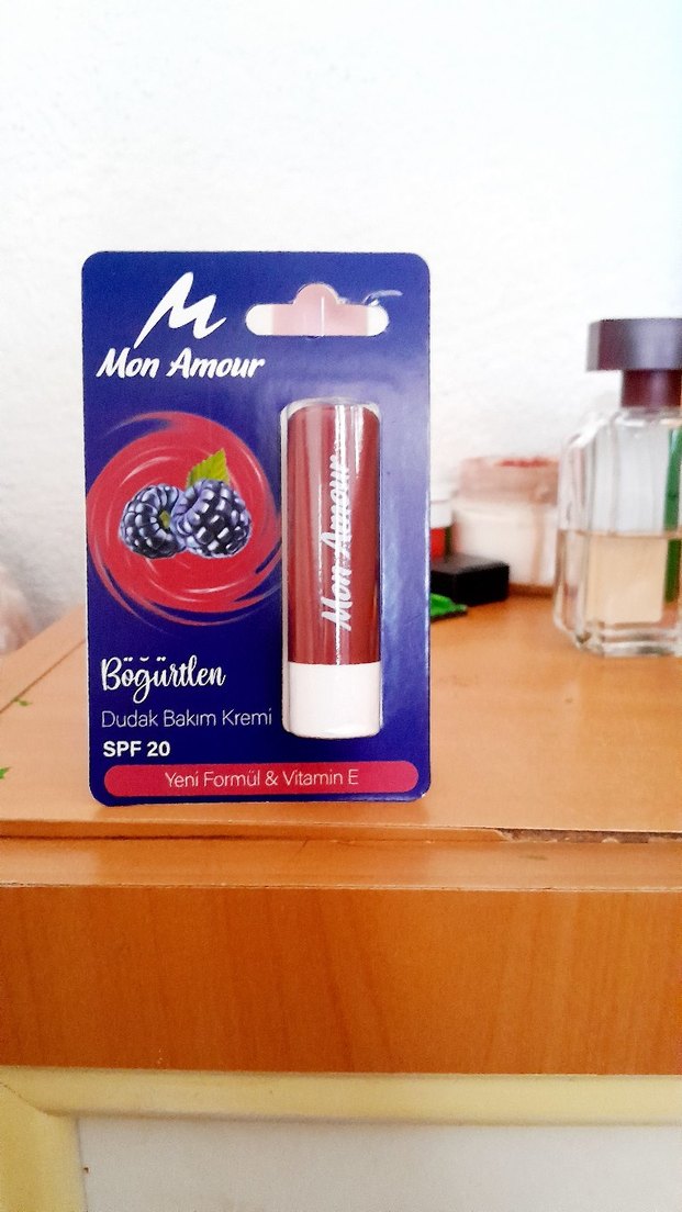 Mon Amour böğürtlen kokulu dudak bakım kremi SPF 20 koruma sağlar, yeni formül ve E vitamini içerir. Dudakları yumuşak ve besler.