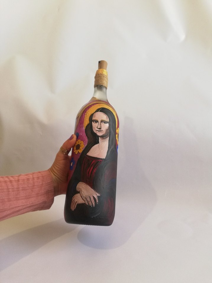 Mona Lisa El Boyaması Mona Lisa Desenli ışıklı şişe