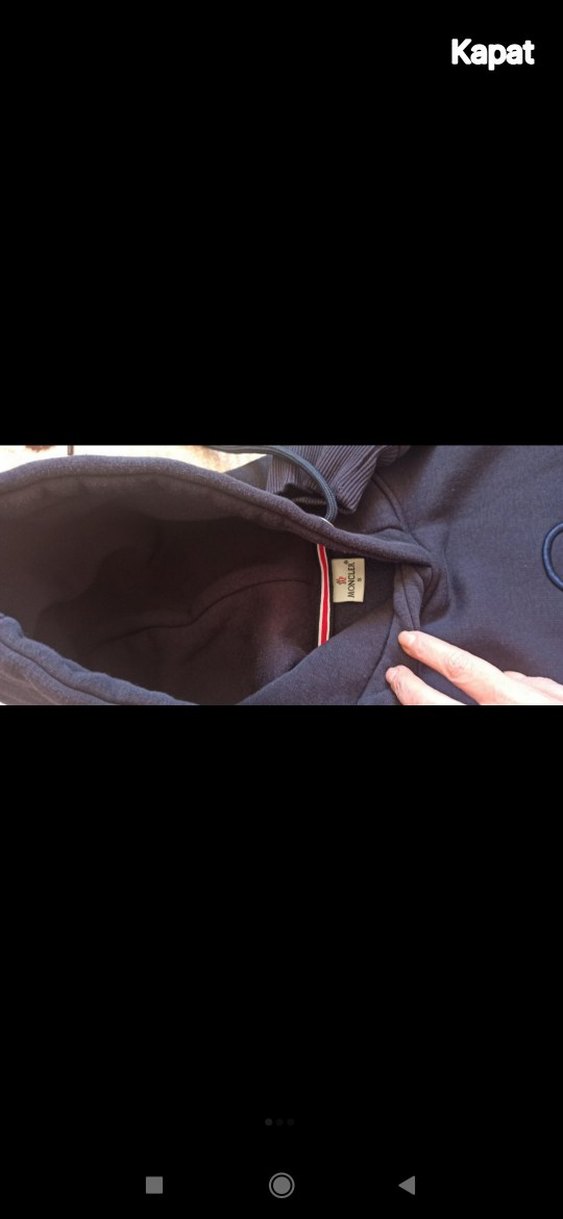 Moncler markalı, kapüşonlu ve fermuarlı, ince kesim erkek sweatshirtü. Yumuşak sentetik kumaştan, uzun kollu ve normal boyda, günlük sokak stili için uygun lacivert renk 2 tane var elimde diğeri bordo 2 tane alımda ikisi 350 ekranı çevirin