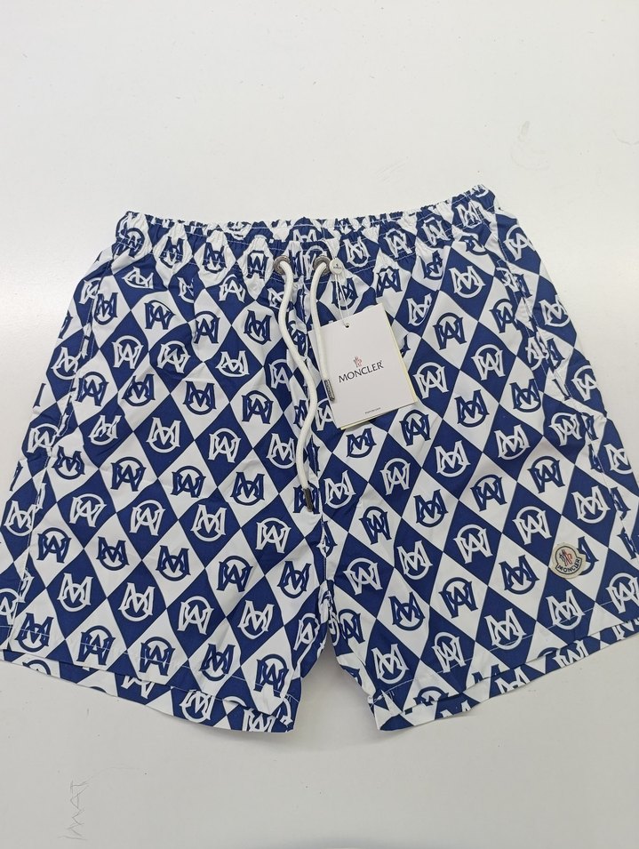 Moncler erkek renkli baskılı mini şort, bol kesim ve düğmeli detaylarla plaj ve sokak stiline uygun.