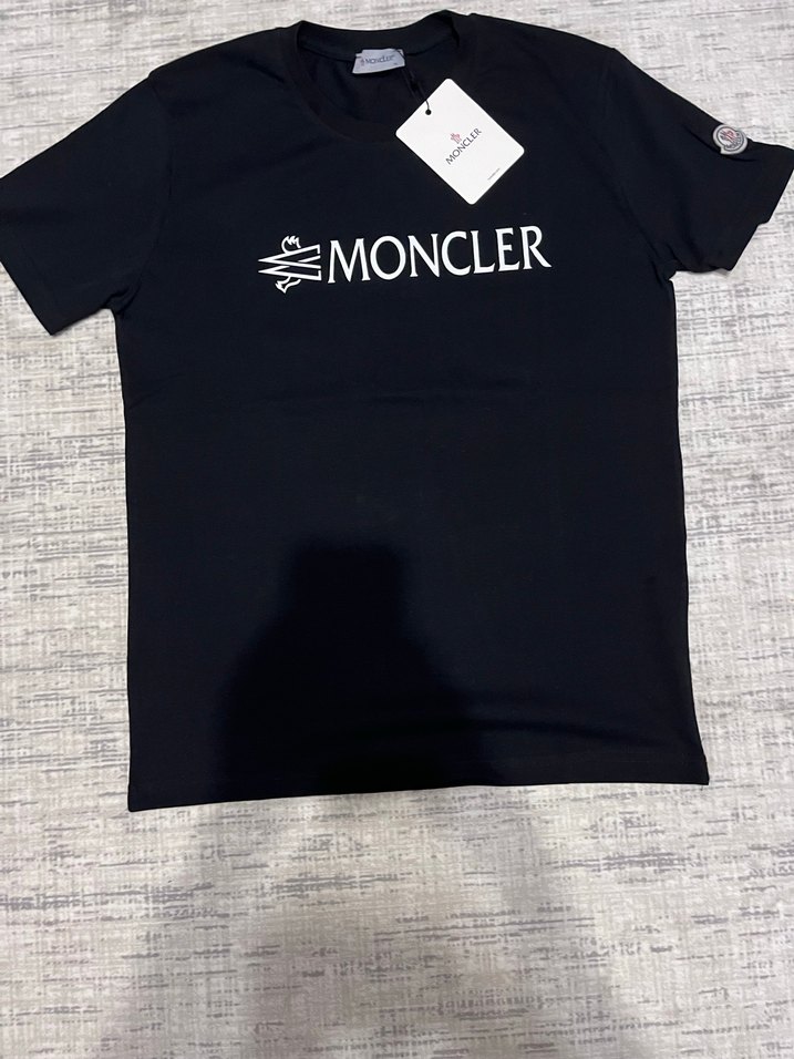 Pamuk kumaştan yapılmış, baskılı Moncler logolu, kısa kollu siyah tişört. Rahat ve şık bir dış mekan görünümü sunar sıfır ürün ve A kalite üründür