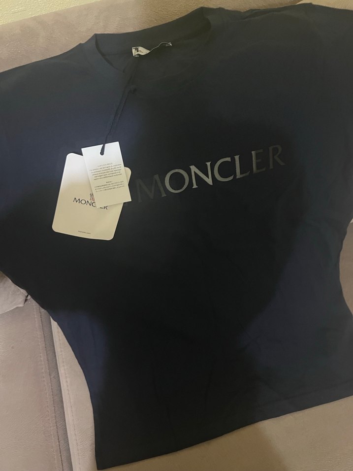 Moncler baskılı, kısa kollu, lacivert , tişört geçen yıl kardeşime hediye aldım küçük gelmişti .