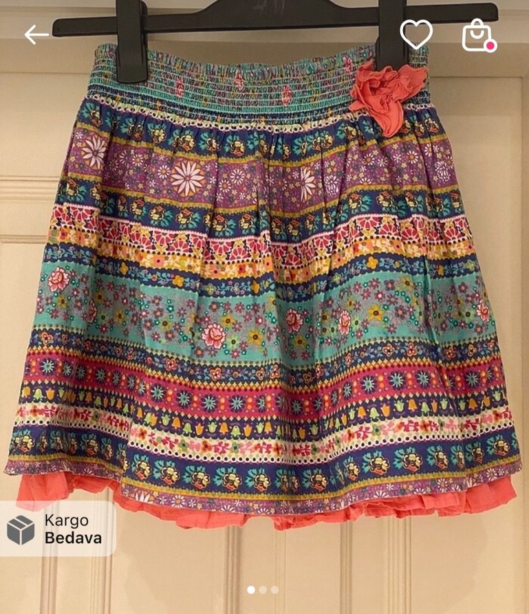 Renkli, bol kesim ve volanlı bohem desenli kız çocuk eteği. Kargo bedava.