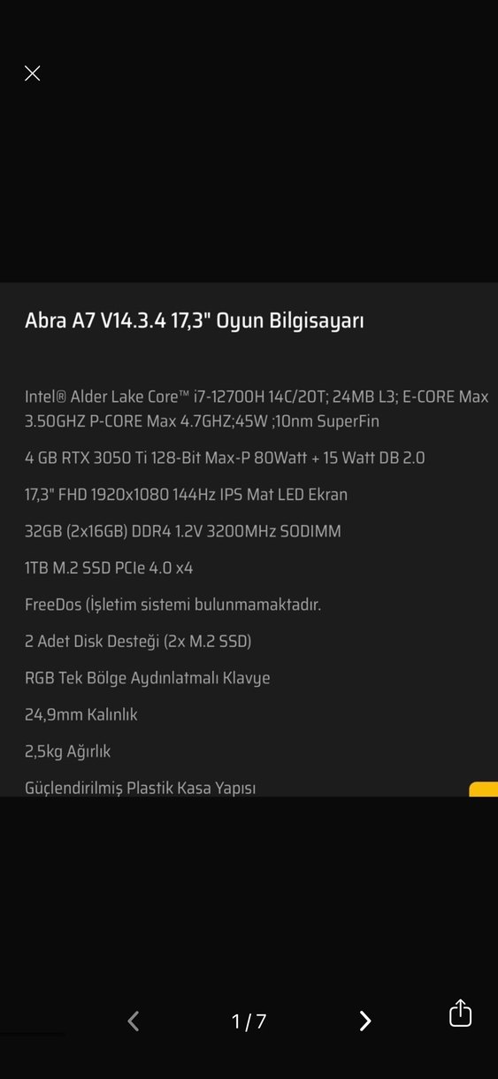 Monster Abra A7 V14.3.4 17,3" Oyun Bilgisayarı