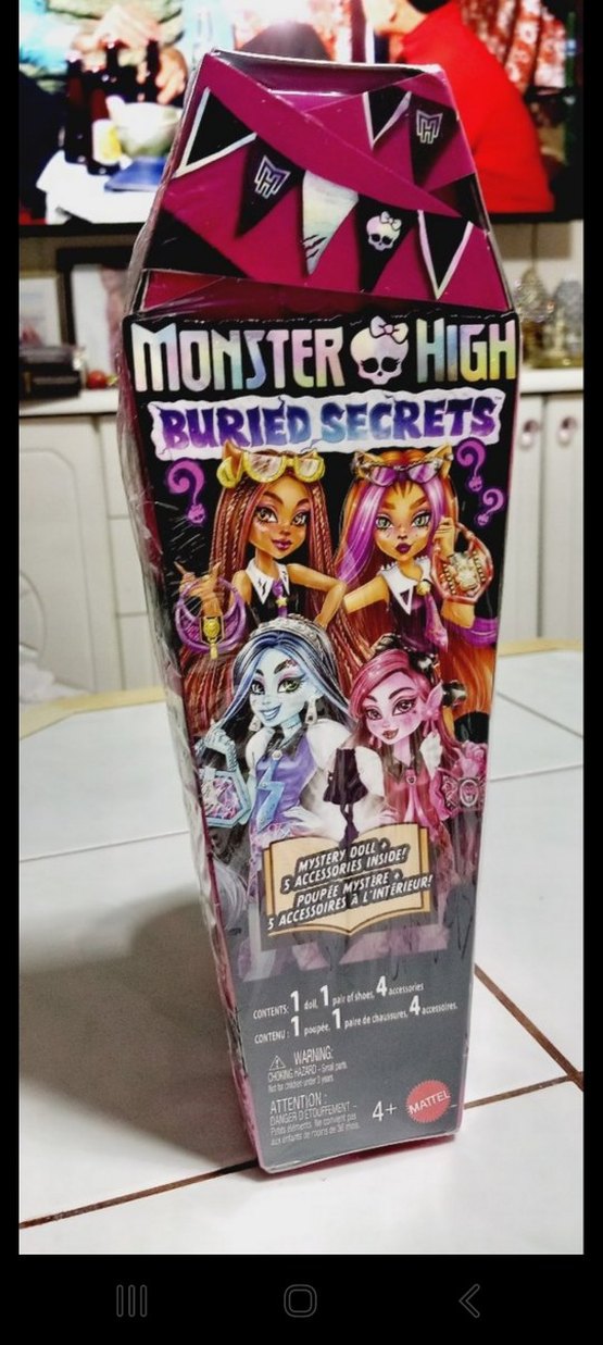 Monster High Buried Secrets mor tonlarda bebek ve aksesuarlar içerir, gizemli bir tarz sunar.