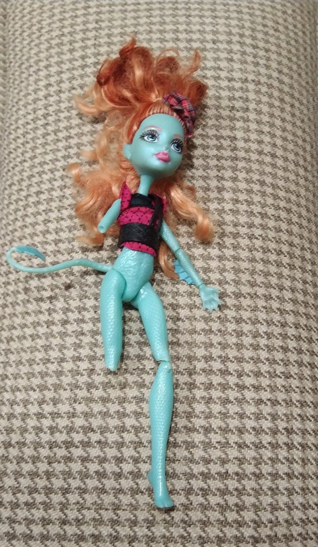 monster high bebek lorna. resimde görüldüğü gibi bir ayağı ve kolunun biri yoktur. geri yeri sağlam sorunsuzdur.