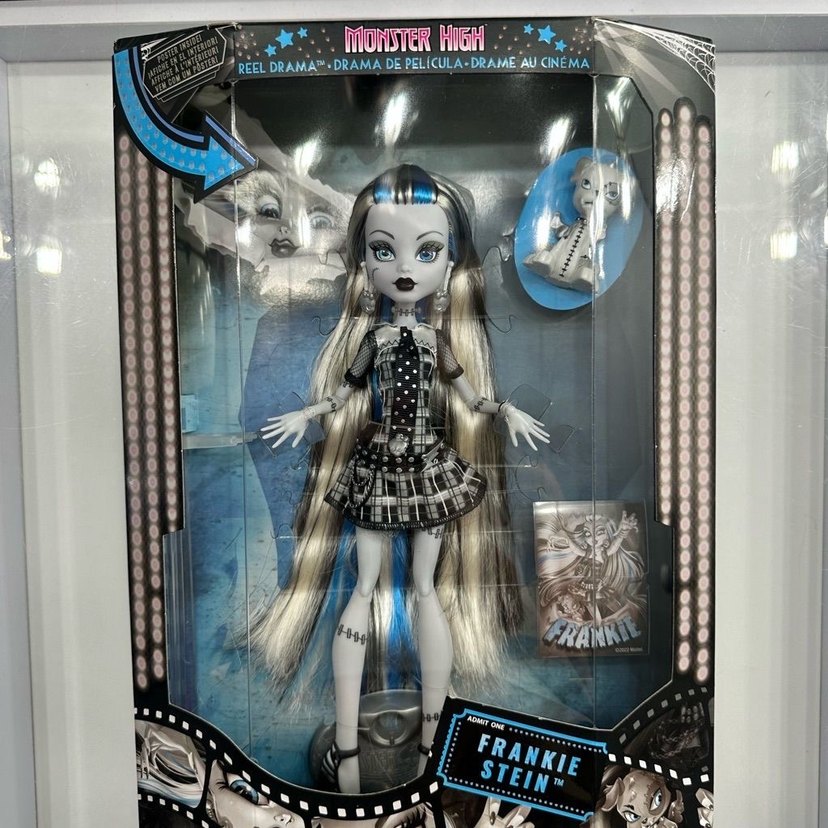 Monster High Frankie Stein bebeği, gri teni ve uzun siyah-beyaz saçlarıyla birlikte gelir. Küçük iskelet evcil hayvan ve temalı kitapçık aksesuarları bulunur. Siyah beyaz ekose kıyafet giymiştir. ♀️